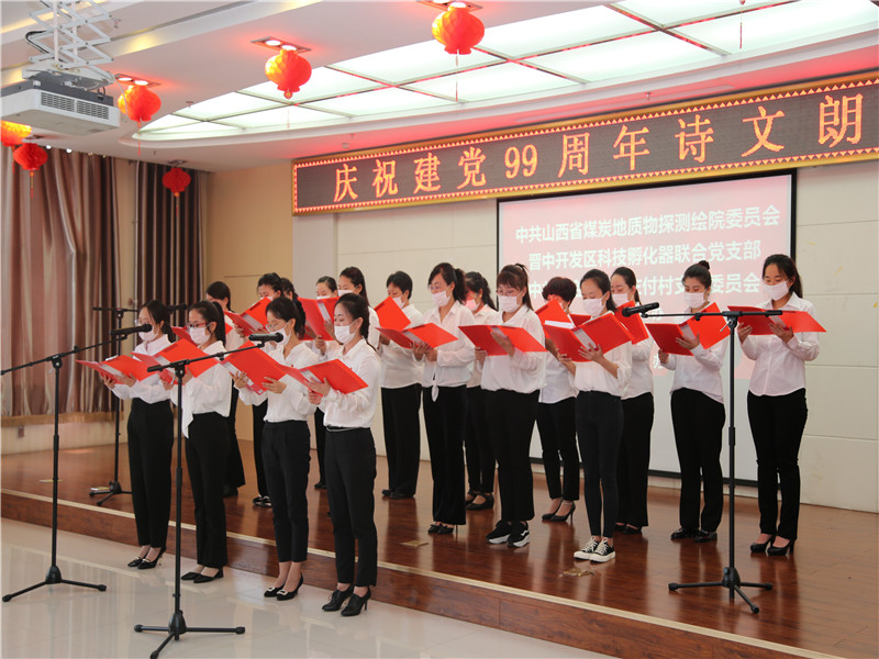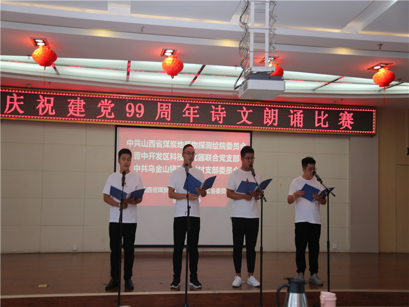 为庆祝建党99周年,围绕“不忘初心 重温我的入党志愿书”这一主题,7月1日上午,由中共山西省煤炭地质物探测绘院委员会与晋中开发区科技孵化器联合党支部、中共乌金山镇西左付支部委员会联合主办,院工会承办的“庆祝建党99周年诗文朗诵”比赛隆重举行。
