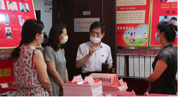 2020年7月30日上午,榆次区文明办赵利芸主任、王玉琼副主任所携区信访局、政协办、锦纶街道一行12人,现场观摩和交流物测院党委党建及文明创建工作成果。