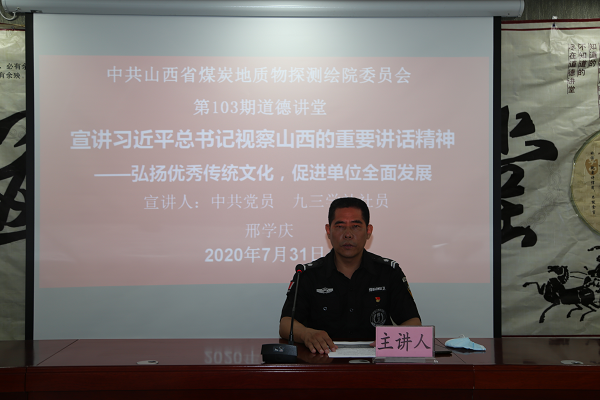 宣讲人刑学庆紧紧围绕习近平总书记视察山西的重要讲话精神为主线,就弘扬优秀传统文化,促进单位全面发展展开宣讲,为中心组理论学习质量又提高了一个层面。