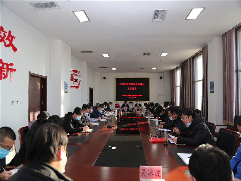 会上原文传达学习了2021年春节期间正风肃纪文件精神。要求全院干部职工要提高政治站位,以更加严实的“风险防控”机制,全力抓好常态化疫情防控,减少“两节”期间人员流动和聚集,同时广大党员干部要认真落实中央八项规定及实施细则精神,严格遵守相关纪律规定,坚持不懈把纠正“四风”工作向纵深推进,确保节日期间风清气正,过一个安定、祥和的节日。