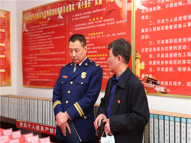 正值全党开展党史学习教育之际,2021年3月16日下午,晋中市消防救援支队政治部主任卫栋一行5人专程赴省物测院观摩交流党建和文明创建工作。