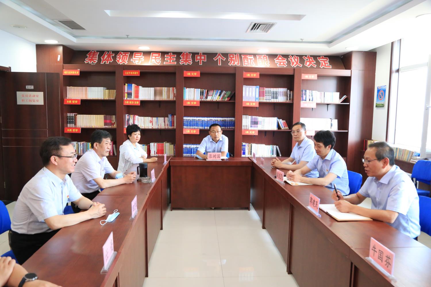 2021年6月18日下午,中煤财产保险股份有限公司党委书记、董事长郭建民一行10人现场观摩党建及文明创建工作。期间并就党史学习教育进行了研讨。