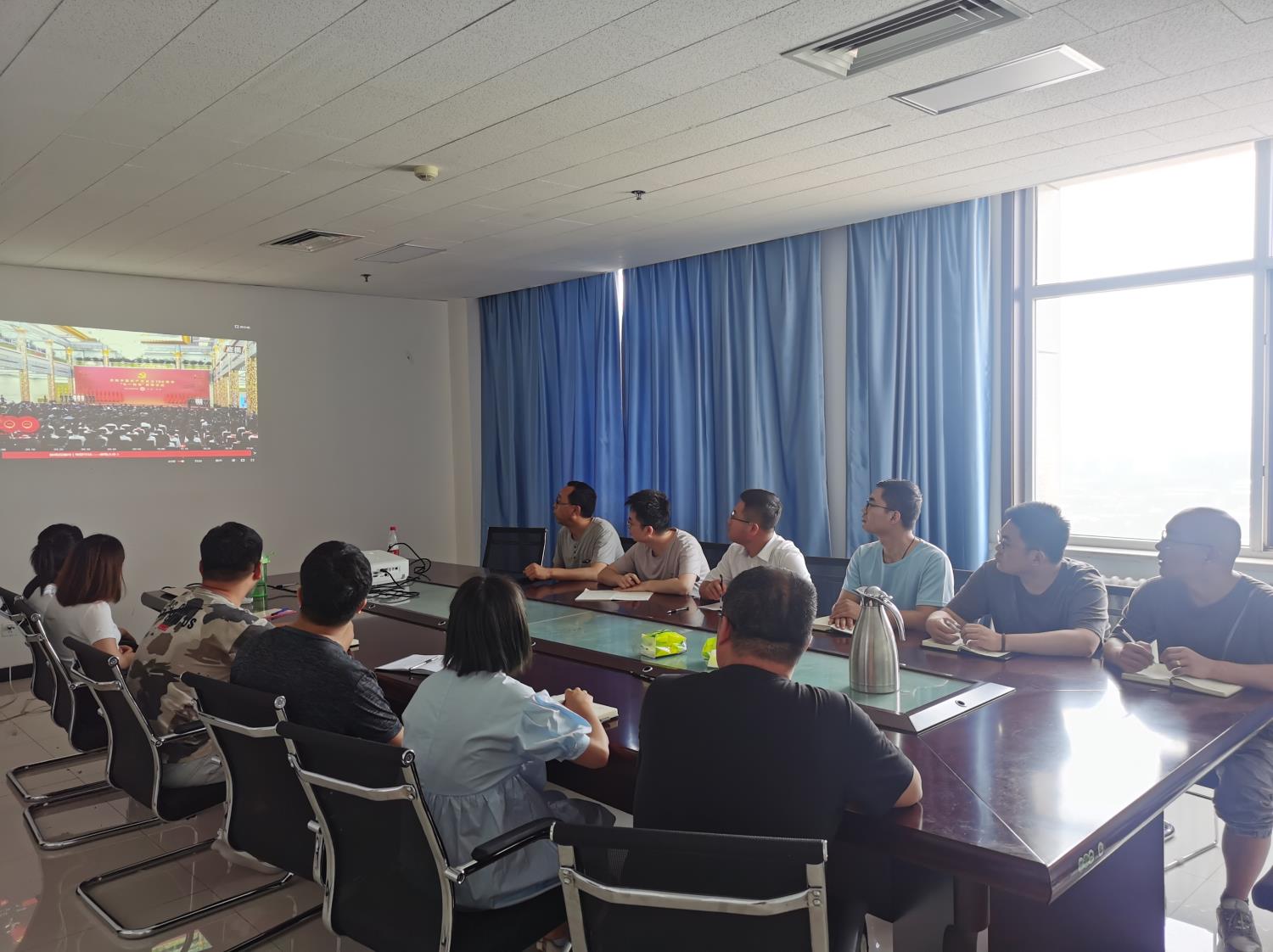 全体党员及职工认真观看视频直播,不时报以热烈的掌声。通过此次活动,全体党员及职工坚定了“永远跟党走”的信念,强化了榜样意识、奉献意识、纪律意识,为践行共产党人初心使命奠定思想基础。