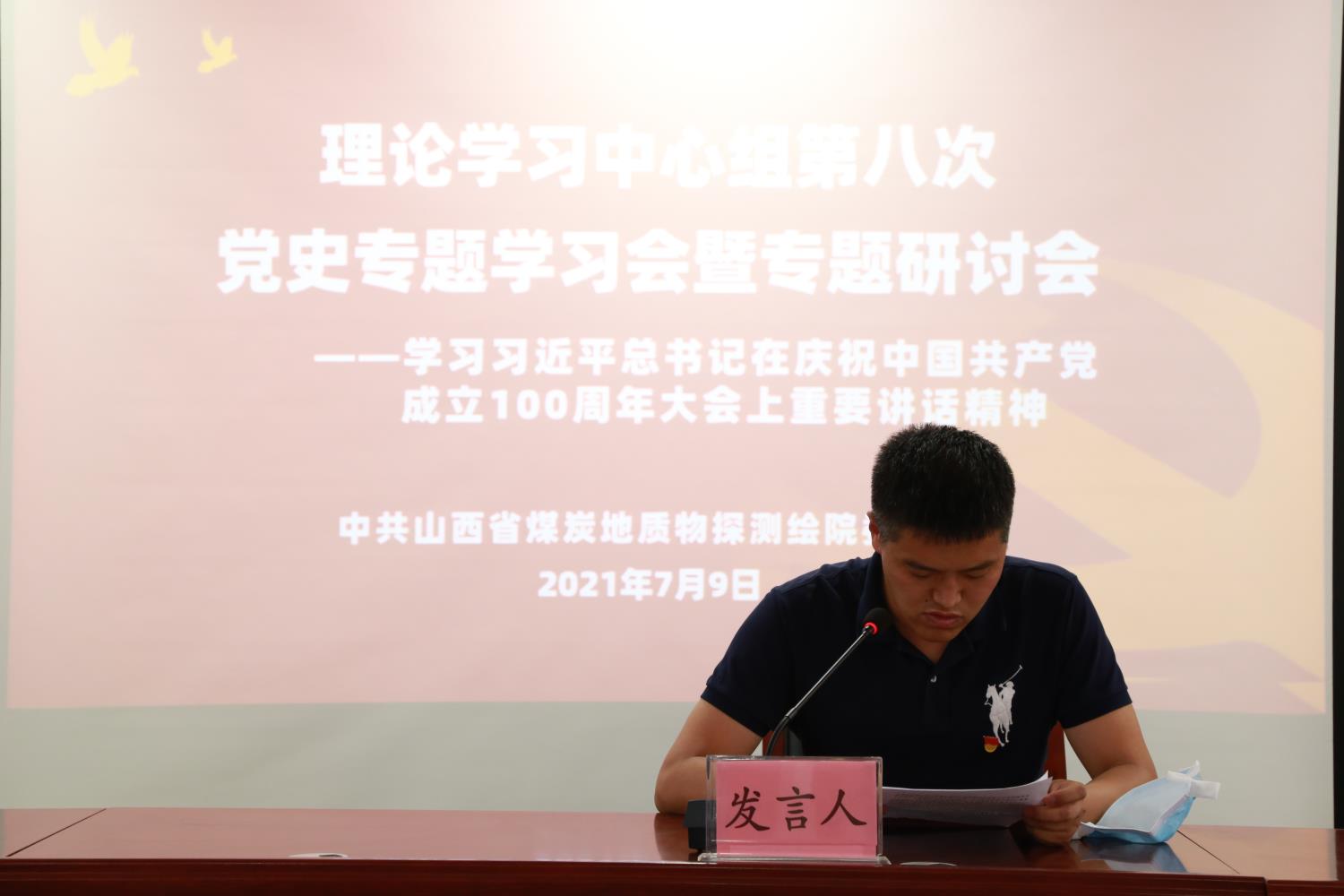 根据党史学习工作安排,2021年7月9日,院党委开展理论学习中心组第八次党史专题学习会暨专题研讨会。重点学习了习近平总书记在庆祝中国共产党成立100周年大会上的重要讲话精神。