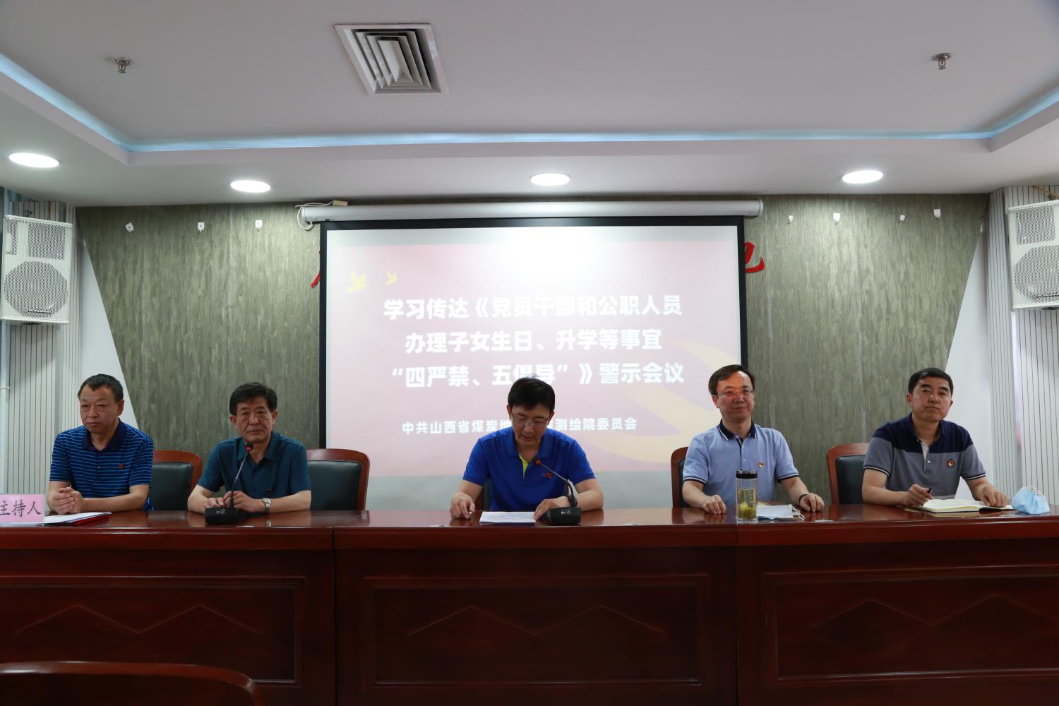 按照省地勘局工作安排,会议主要传达了《党员干部和公职人员办理子女生日、升学等事宜“四严禁、五倡导”》,随后院党委书记结合实际就深入贯彻中央八项规定精神,持续纠正“四风”,职工遵法守纪进行了宣讲,动员并号召党员干部和全院职工为单位持续稳定健康发展做出尽有之力。最后党委副书记、院长田忠斌作了重点强调。