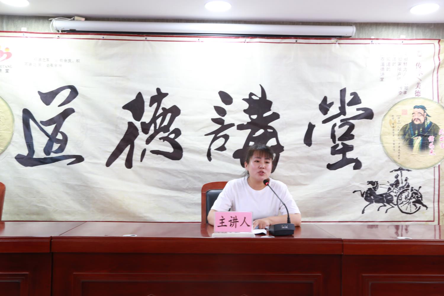 本期《道德讲堂》由院党委书记主持。院党委成员、中心组成员、民主党派人士、干部职工60余人参加。