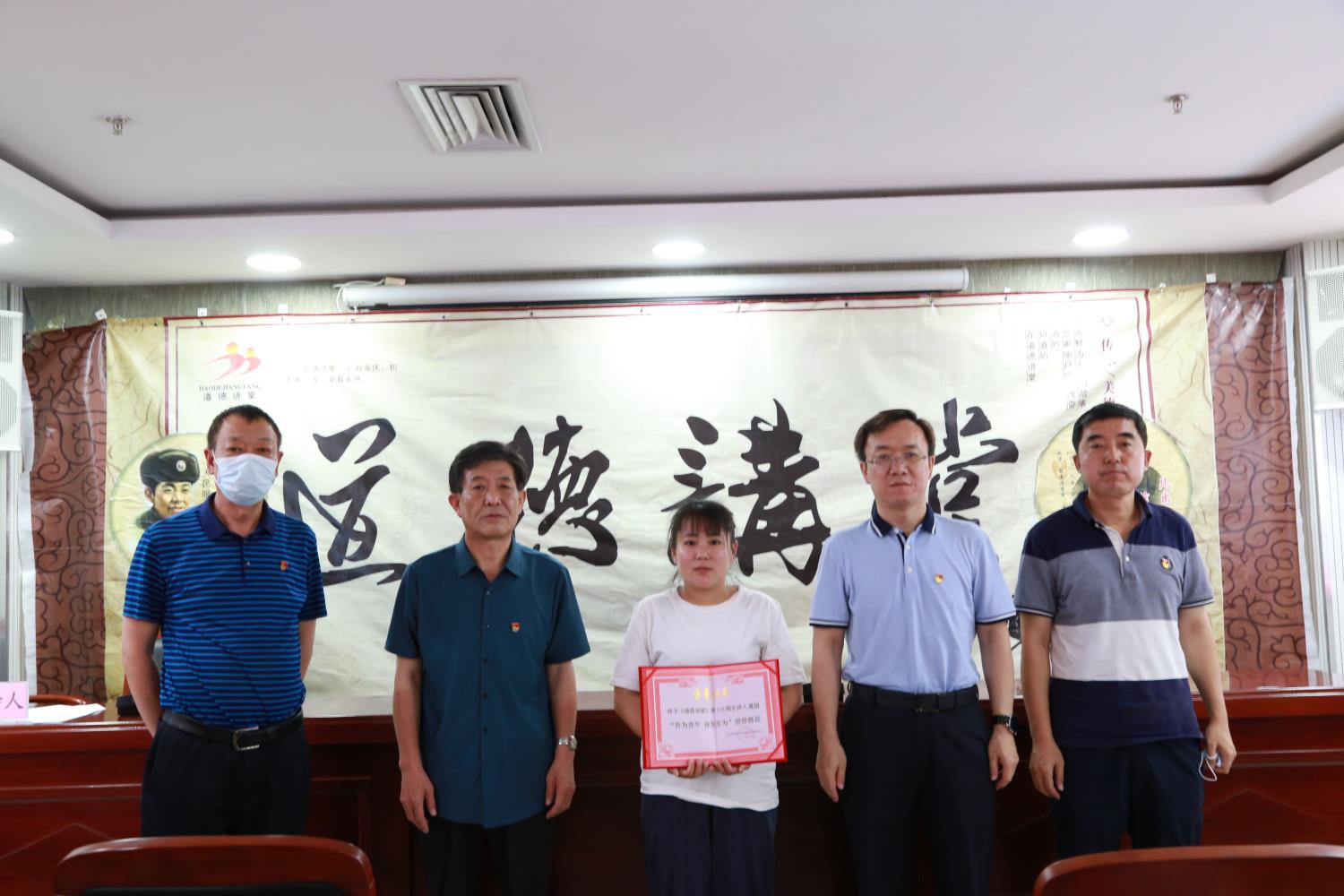 最后,院党委成员为其颁发了《有为青年 奋发有为》道德模范证书,本期道德讲堂在大家齐声高唱《没有共产党就没有新中国》的歌声中圆满结束。