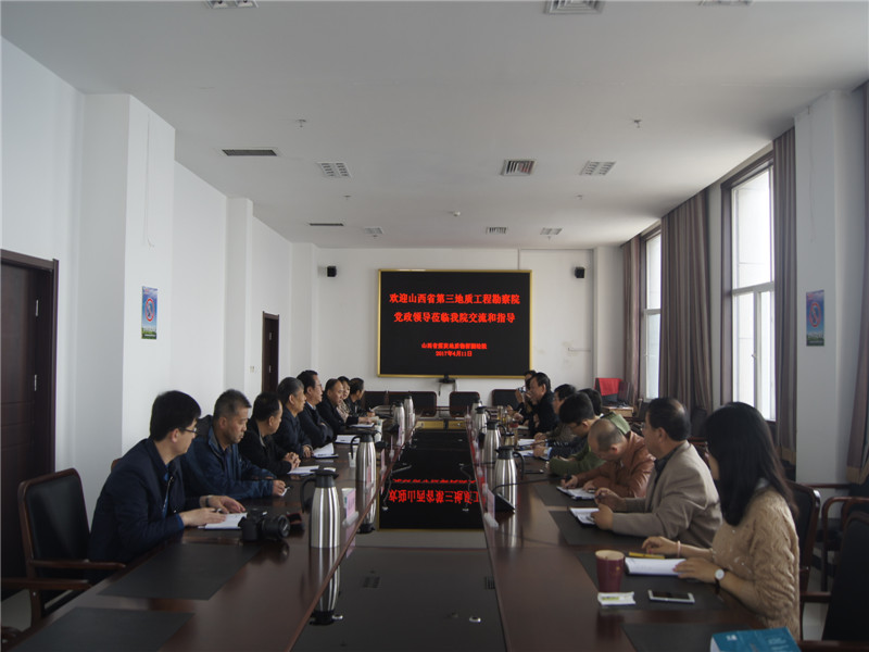 4月11日上午,山西省第三地质工程勘察院院长张爱国同志、书记王朝峰同志一行8人,赴我院进行交流指导。院班子成员及相关科室负责人参加了此次会议。