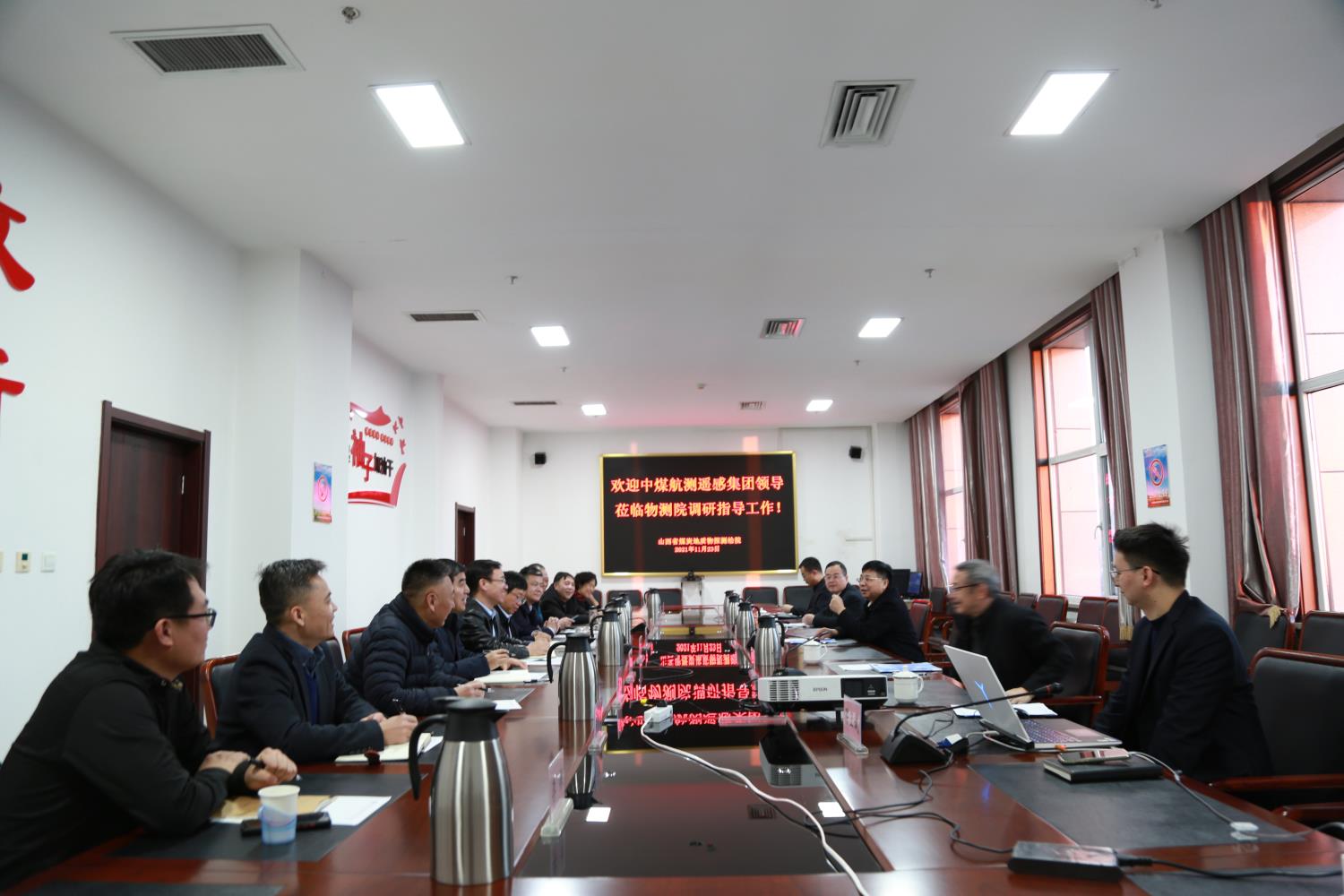 2021年11月23日下午,中煤航测遥感集团党委书记、董事长赖百炼,航测工程分公司副总经理马金龙,智慧矿山分公司总经理王晓鹏,大数据中心陈卫斌一行4人现场观摩党建及文明创建工作并参观了院士专家工作站和重点实验室。