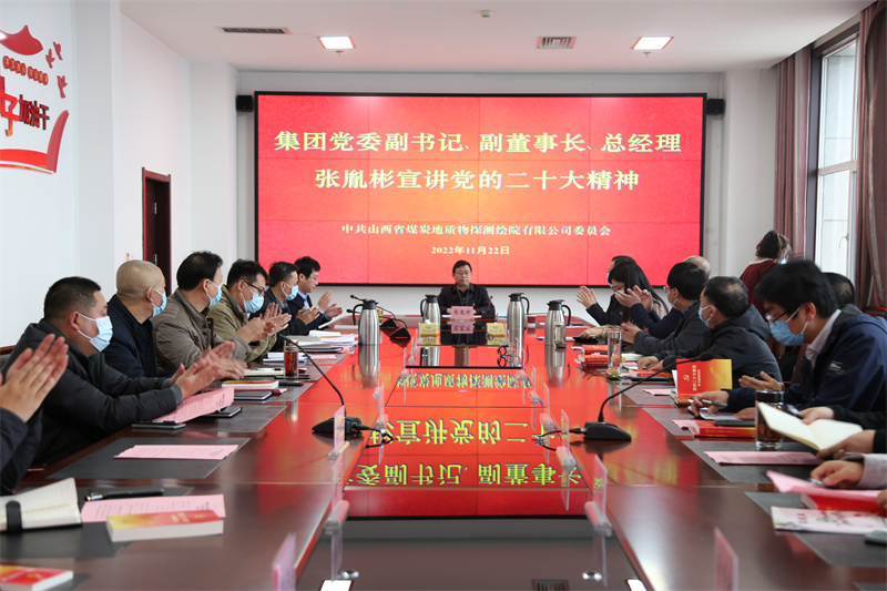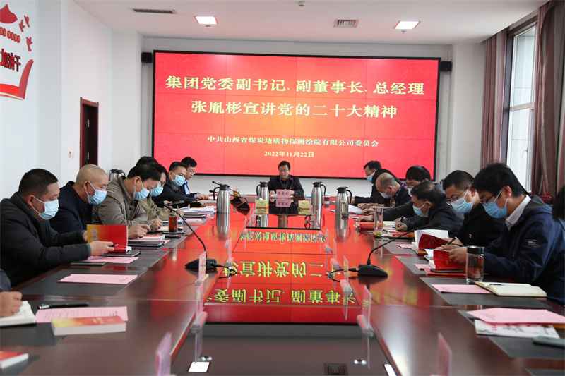 会上,张胤彬围绕党的二十大主题、主要成果以及过去5年工作和新时代的伟大变革等8个方面全方位对党的二十大精神进行了系统讲解。他指出,党的二十大是在全党全国各族人民迈上全面建设社会主义现代化国家新征程、向第二个百年奋斗目标进军的关键时刻召开的一次十分重要的会议,是党团结带领全国各族人民夺取中国特色社会主义新胜利的政治宣言和行动纲领。他强调,要深刻领悟“两个确立”的决定性意义,增强“四个意识”、坚定“四个自信”、做到“两个维护”,深入学习宣传贯彻党的二十大精神,深入贯彻落实习近平总书记考察调研山西重要指示精神,奋力开创“一局一集团”新体制下山西地勘事业高质量发展新局面,为全面建设社会主义现代化国家、全面推进中华民族伟大复兴作出更大贡献。