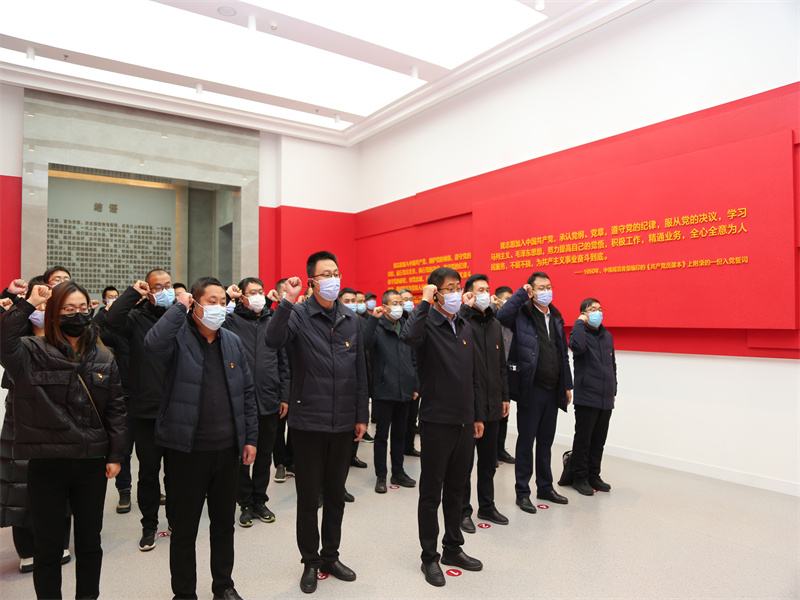 观展中,通过讲解员的解说、文化展板、模拟场景、多媒体等方式,直观生动的对在场的每名同志进行了一次理想信念教育、党纪国法教育、案例警示教育和廉洁文化教育。在宣誓厅,面对鲜艳的中国共产党党旗,公司党委副书记、副董事长、总经理李志有带领大家重温入党誓词。