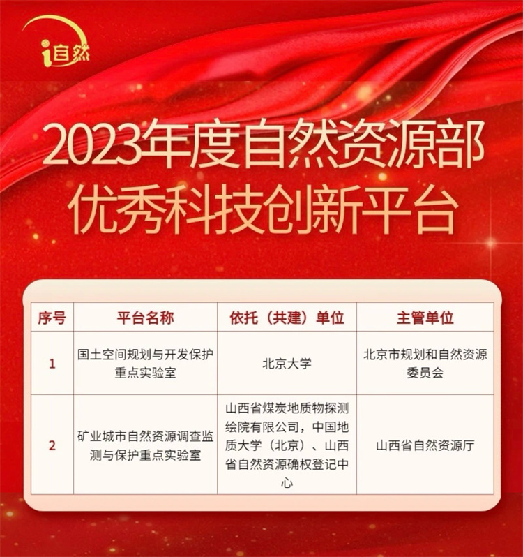 近日,自然资源部公布了2023年度优秀科技创新平台及优秀青年科技人才的评选结果。在此次评选中,物测院有限公司自然资源部矿业城市自然资源调查监测与保护重点实验室(以下简称重点实验室)荣获“2023年度自然资源部优秀科技创新平台”殊荣。