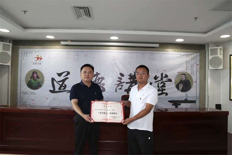 本期讲堂在温馨与感动中推进到了送祝福环节。公司党委委员、副总经理、总工程师申有义为主讲人颁发了第155期《道德讲堂》“爱岗敬业”道德模范奖状。工程物探公司党支部送给了现场各位一份祝福,希望大家珍惜时光、脚踏实地、埋头苦干、砥砺奋进,以无悔之青青春奉献祖国勘探事业,用奋斗之年华谱写自己的精彩人生。