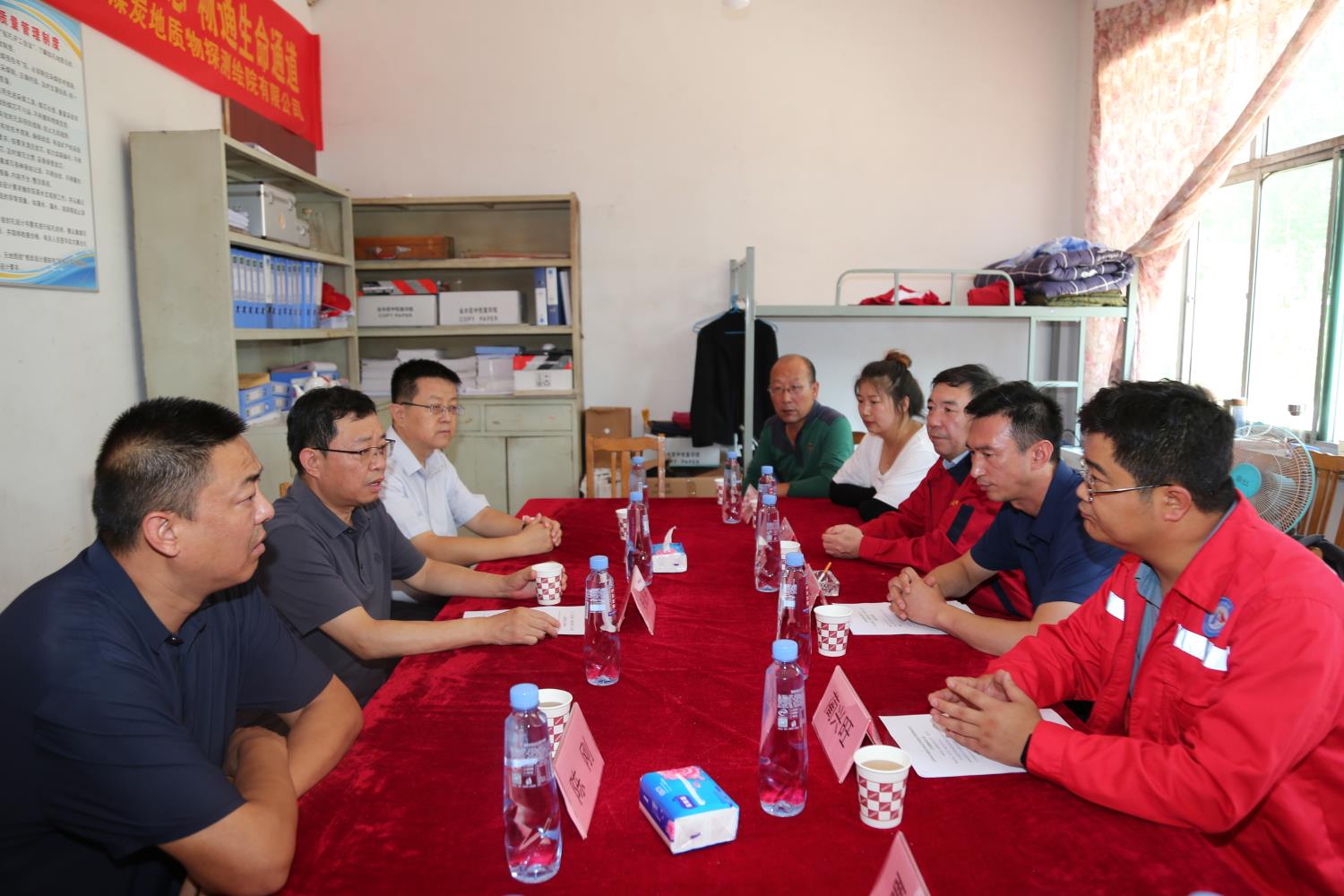张胤彬一行驱车前往钻机现场看望施工人员,送上了防暑降温物品及慰问金,他叮嘱大家注意劳逸结合,要确保人身健康和安全生产两不误。随后,他通过实地查看和询问,详细了解工作人员生活条件、工作状况和项目进展情况,并与项目人员开展座谈交流。