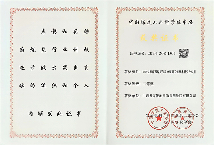 2024年度煤炭行业科技创新成果总结与新技术交流会于11月28日-29日在福建厦门举行,会上对2024年度中国煤炭工业协会科学技术奖获奖项目进行了表彰。物测院有限公司主持完成的《沁水盆地深部煤层气甜点预测关键技术研究及应用》项目成果荣获科学技术二等奖。