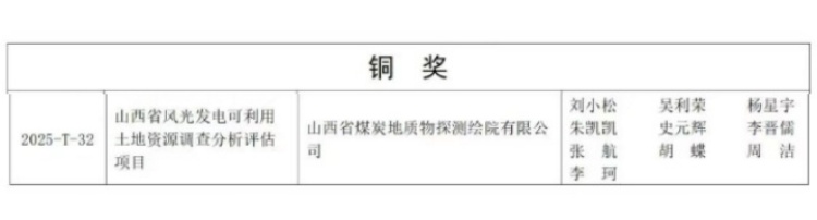 近日,2025地理信息产业优秀工程奖评选结果正式公布,物测院有限公司航测遥感中心承担的《山西省风光发电可利用土地资源调查分析评估项目》荣获铜奖。地理信息产业优秀工程奖由中国地理信息产业协会组织评选,是国内地理信息领域的高级别奖项。此次获奖,体现了航测遥感中心在遥感技术应用与能源地理信息分析方面的专业实力。