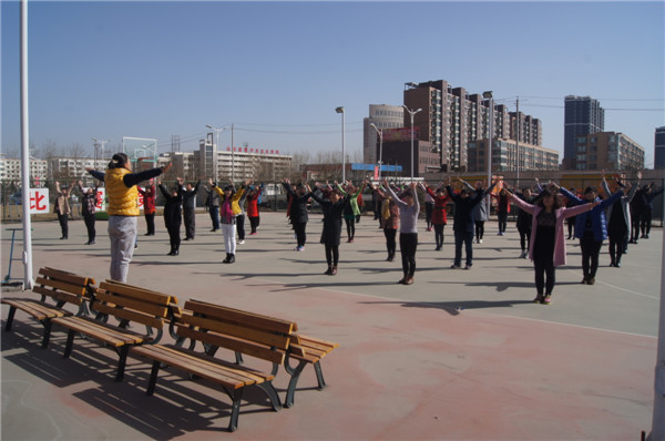 为增强广大干部职工的身体素质,进一步活跃全院体育文化氛围,3月7日上午10点,院工会团委组织在院干部职工逾60人在篮球场学习了第九套广播操。