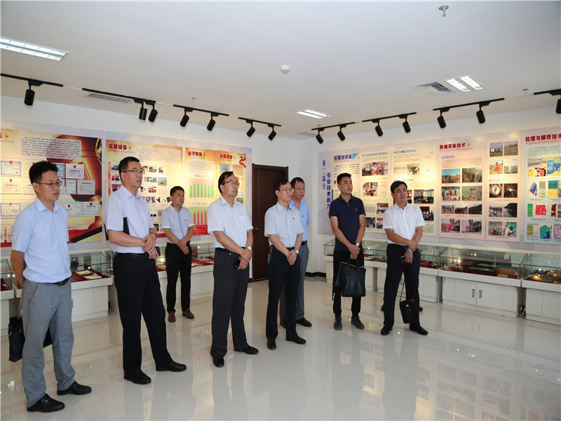 首先,常洪华一行观摩了科技创新展览室、院士专家工作室、仪器设备陈列室,对物测院在物探、测绘、地质、航测遥感、地理信息、地质司法鉴定等方面取得的成效给予了高度肯定,特别是对物测院作为全国先进基层党组织的获得者、全国为数不多的通过党建质量体系认证的单位;成立院士专家工作站;在地理信息、航测遥感等高尖端领域、矿山生态修复等方面的创新与探索表示赞赏。