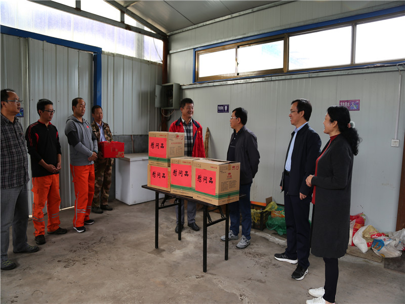 9月19日,中秋国庆佳节来临之际,省局副局长张胤彬一行冒着连绵的秋雨深入和顺县横岭镇物探三处项目部,为依然坚守在野外一线的全体职工送去了慰问品和节日的关怀与祝福。一抵达项目部,张胤彬副局长与每一位职工握手交谈,详细询问了大家的生活情况及存在的问题和困难。在听取了项目负责的介绍后,认真查看了野外监视记录,充分肯定了项目部全体职工的辛勤工作,同时就生产中遇到的问题,与工程技术人员进行了交流,提出了许多指导性的意见和建议,勉励大家要齐心协力,克服不利因素,力争安全、优质、高效地完成施工任务。