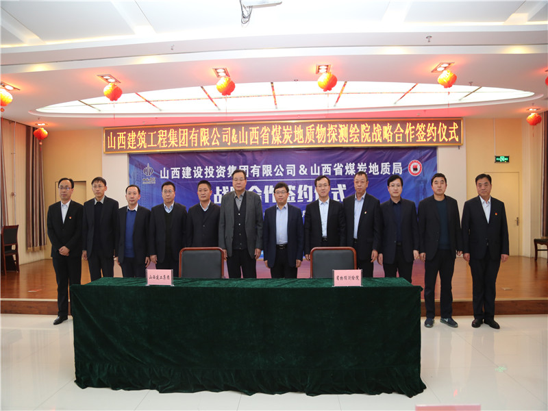 强强联合促发展,开启生态合作新征程。1月4日,山西省煤炭地质物探测绘院迎来2019开年三大喜事。山西省煤炭地质局与山西建设投资集团在省煤炭地质物探测绘院签署战略合作协议;省煤炭地质物探测绘院与建工集团在重组金地源公司的基础上又签订了深度融合合作协议;省煤炭地质局党委副书记、局长王学军与山西建设投资集团有限公司党委书记、董事长孙波共同为金地源公司揭牌。