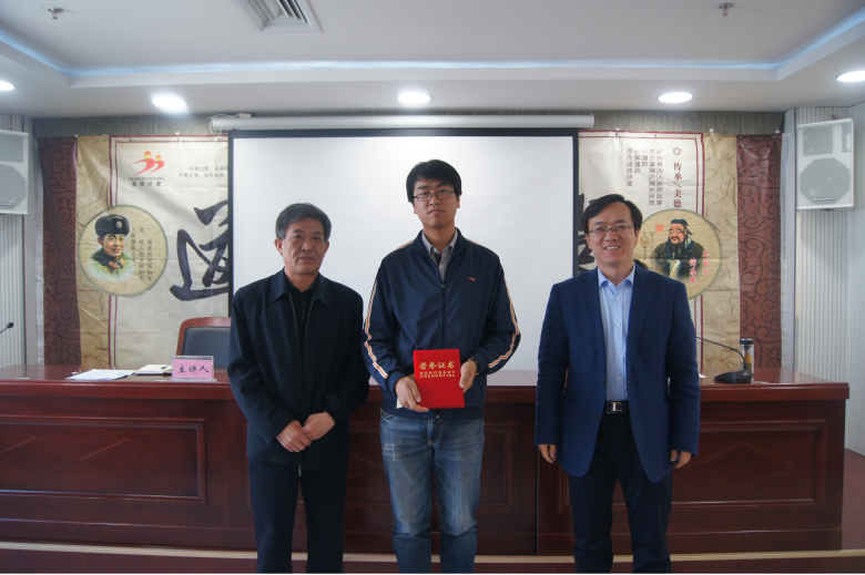 按照既定流程,院党委书记张恩义同志与总工程师、副院长田忠斌同志为杨晓东现场颁发了“优秀职工”证书及荣誉金。