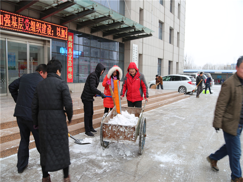 1月4日,晋中市迎来了开年的第一场雪,漫天飞舞的大雪给大家上下班出行带来了不便。为了给广大职工出行减少安全隐患,一大早,在院的广大职工近20余人自发地对办公楼周围的积雪进行了及时清理。