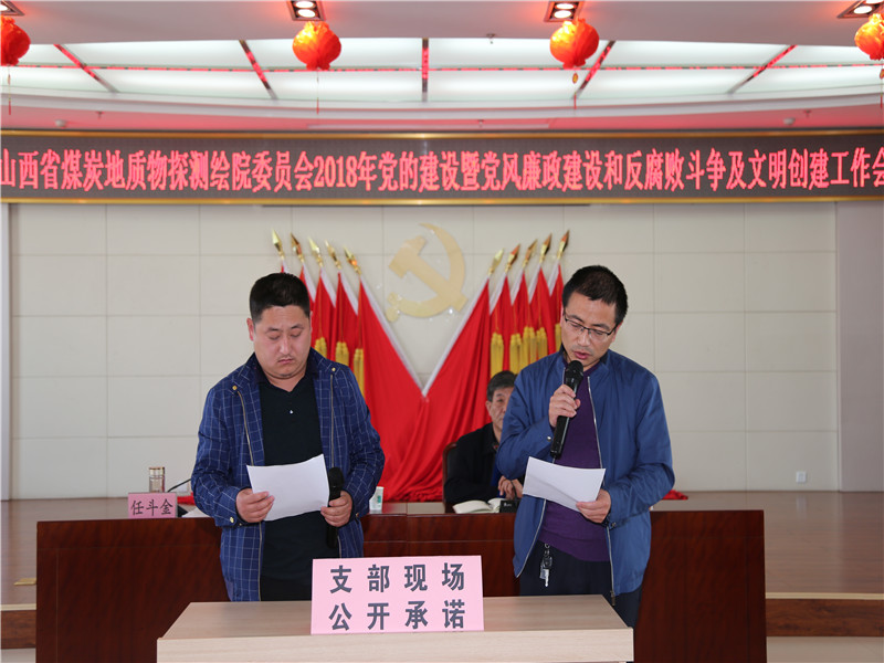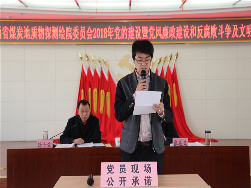 会议传达了局党建工作会议精神及党委书记卫洪平同志在全局的讲话;传达了省纪委派驻省煤炭工业厅纪检组组长李方同志的讲话;宣读了巡察决定及实施方案和“两学一做”检查情况通报;表彰了2017年度宣传报道优秀党支部、优秀通讯员、优秀播音员的决定;通报了2017年度各党支部稿件、个人稿件情况;支部书记现场公开承诺,党员代表现场公开承诺;进行了2017年度支部书记述职评议;签订了党风廉政责任书和保密责任书;观看反腐倡廉教育片。最后,院党委书记安排部署2018年党建、党风廉政建设和反腐败工作;安排部署2018年社会综合治理和文明创建工作等工作。院党委要求各支部积极贯彻落实会议精神,不忘初心、砥砺前行,如期完成年度党建质量管理体系既定目标和院党委安排部署的其它任务。