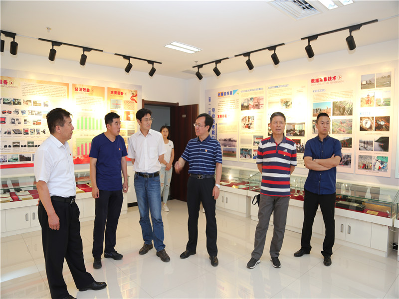 “夏送清凉”送的是鼓舞更是期望。24日下午,郭化主任一行从野外施工现场来到物测院进行了参观指导。期间,郭主任一行先后参观了物测院的科技展览室、院士专家工作室和无人机等设备仪器,并与作业员深入交流工作情况。参观中郭主任一行对物测院在电磁法勘探、地质勘查、地震勘探、城市管网探测和测绘专业领域取得的成果给予肯定,更加直观的感受到了物测院浓厚的干事创业氛围。