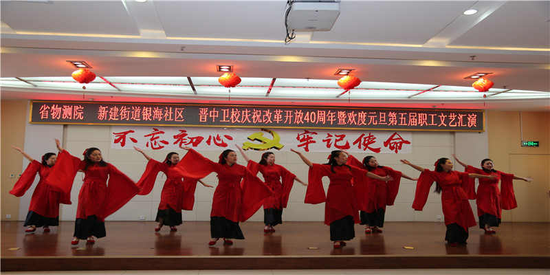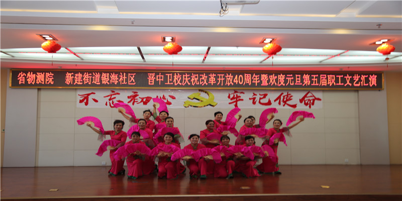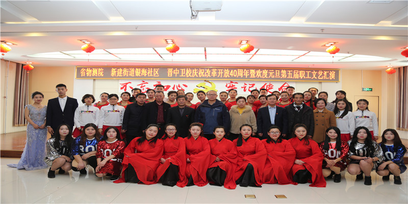 2018年12月29日上午,省煤炭地质物探测绘院与新建街道银海社区和晋中市卫生学校联合庆祝改革开放40周年暨欢度元旦第五届职工文艺汇演。新建街道办事处党委书记俞民山、新建街道办事处主任宁艳琴、新建街道办事处副主任张宏斌、晋中卫校工会主席赵映喜、银海心悦社区党支部书记李巧兰专程参加。