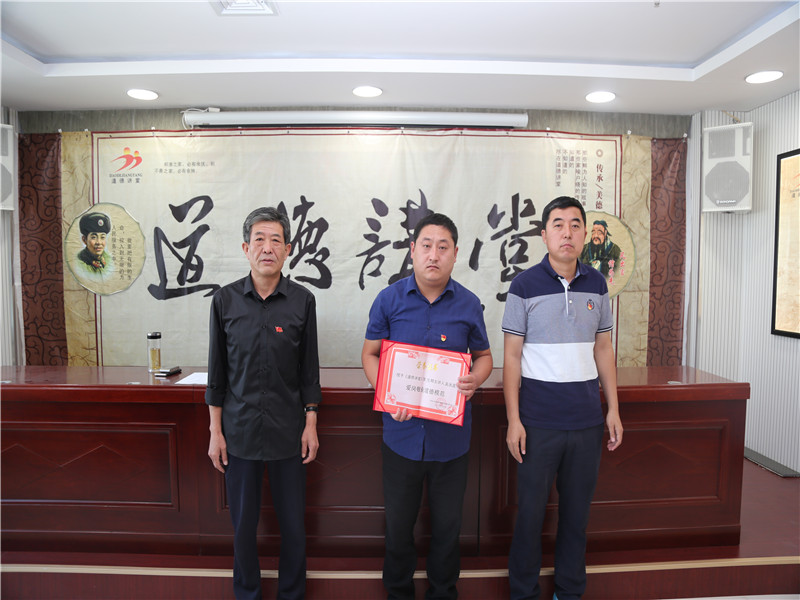 期间,院党委张恩义书记和杨文府副院长共同为吴冰波颁发了物测院第78期《道德讲堂》“爱岗敬业道德模范”的证书。