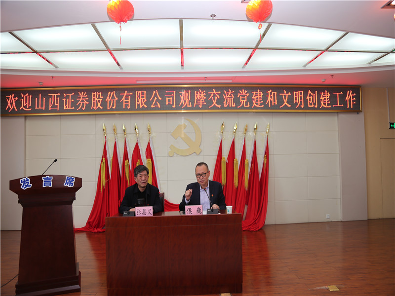 正值全省开展的“改革创新、奋发有为”大讨论之际,2019年4月12日下午,由山西证券股份有限公司党委书记、董事长、总经理侯巍带队的党务干部一行80人专程赴省物测院观摩交流党建和文明创建工作。