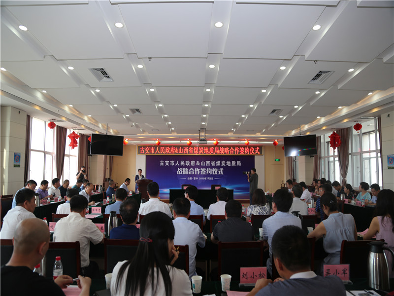 7月5日下午,古交市人民政府与山西省煤炭地质局在物测院开展战略合作签约仪式。局党委副书记、局长王学军,局党委委员、总工程师宋儒,副局长张胤彬,古交市委副书记、市长刘锦春,古交市委副书记张麒,古交市委常委、副市长马彦明,古交市副市长赵丽斌出席签约仪式。签约仪式由省局党委委员、总工程师宋儒主持。