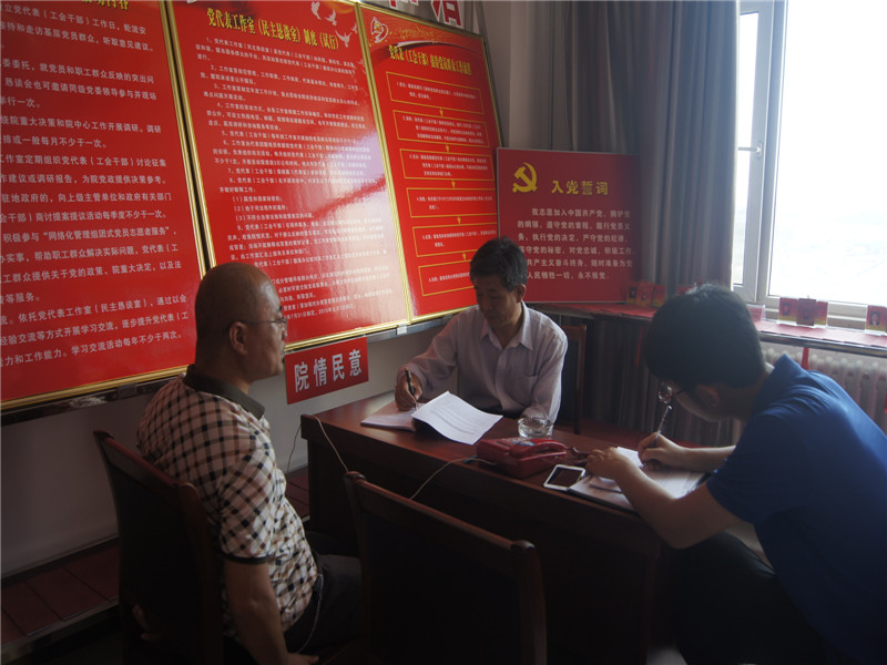 为更好地开展“两学一做”学习教育,在不影响各实体生产经营活动的基础上,8月5日,我们把党委书记约谈基层党支部书记这项工作移到“党代表工作室”(民主恳谈室)。张书记与11个支部书记就党建质量管理体系运行情况、支部开展的25项工作,“两学一做”开展情况、廉洁自律以及针对支部存在的问题等方面逐项进行了面对面的约谈。通过开诚布公、推心置腹的交流,帮助基层党支部书记进一步理清了思路,更加坚定了他们围绕生产经营抓好基层组织建设的信心和决心。本次共接待党员群众11人,提出意见和建议6条。
