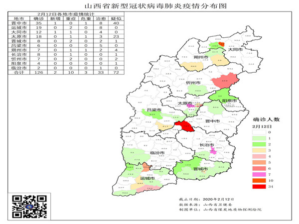 生态环境中心在第一时间即2020年2月2日后,以山西省卫健委公布的官方数据为基础,发挥专业技术优势,采用GIS空间分析技术,制作山西省疫情分布图及趋势图,为晋中市疾控中心提供了数据参考。