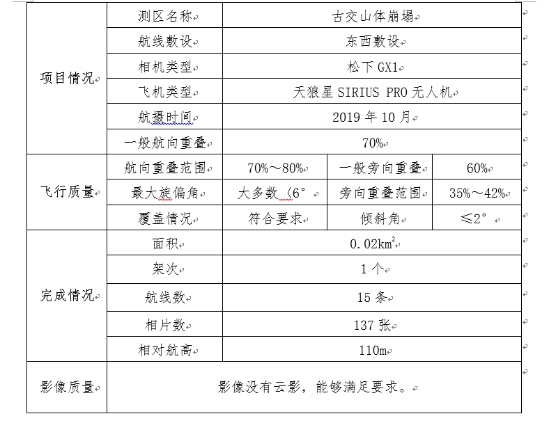 本项目航空摄影工作情况见表1